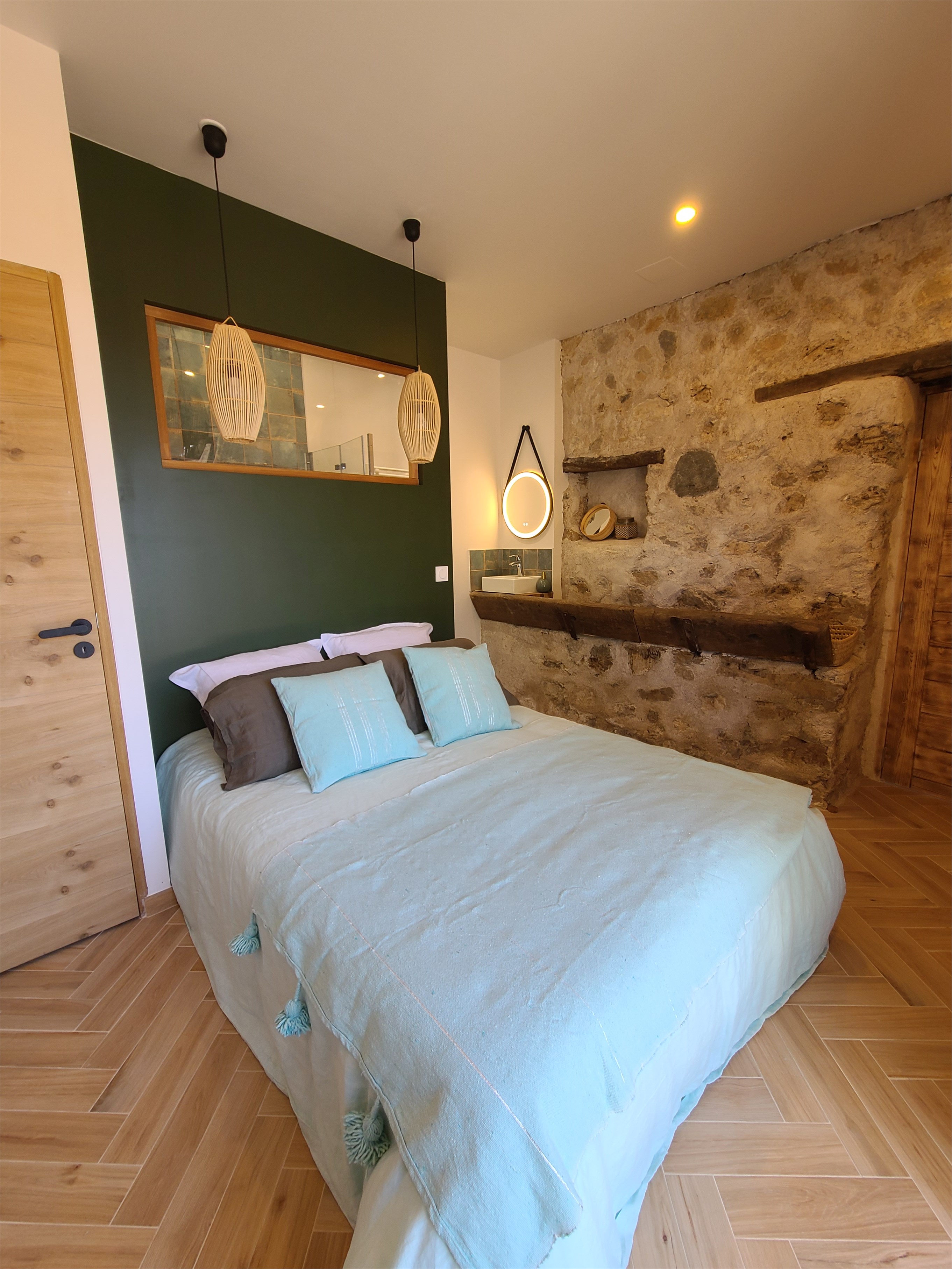 L'Alpage est niché dans une ancienne grange rénovée avec goût. Le gite du chamois, au rez de chaussée, est un gite cosy, chaleureux, ouvert sur l'extérieur et sur l'environnement exceptionnel qui l'entoure.