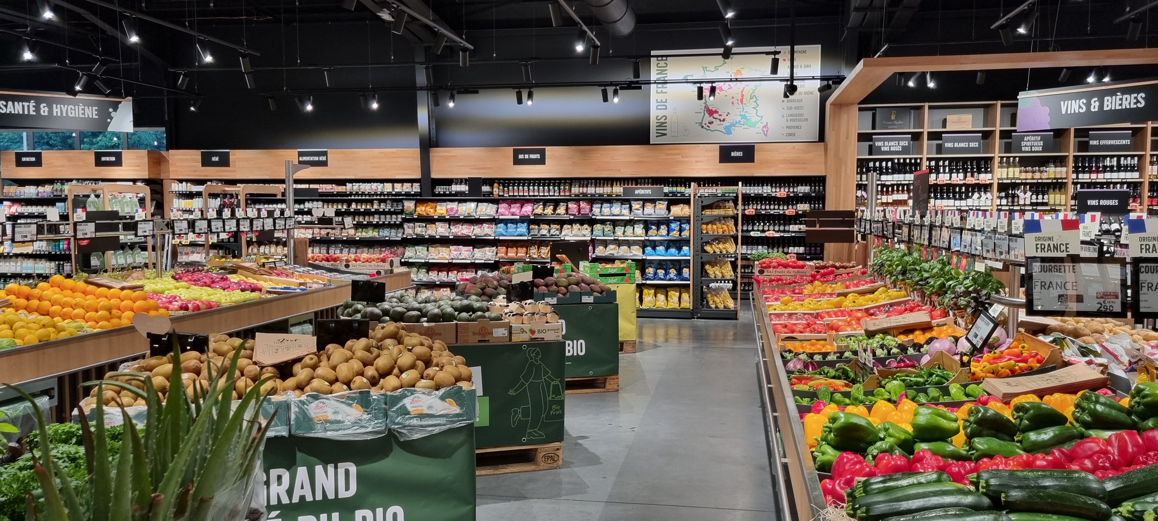 Découvrez dans votre grand marché du bio à Drumettaz nos rayons débordants de fruits et légumes de saison, de produits locaux, d'épicerie vrac, de fromages, de viandes et de poissons, sushis frais et pains cuits sur place.